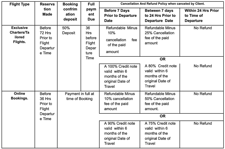 III. BOOKING, PAYMENT & CANCELLATION MATRIX